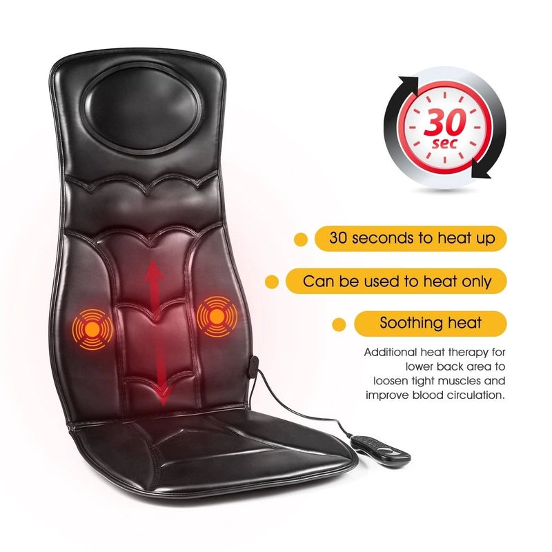 - Pick Certain Zones for your Sore Parts - The relief expert car seat back massager cushion with 10 vibrating motors for 4 massage zones can promote blood circulation, relieve pain and smooth muscle on your shoulder, upper/lumbar/lower back, waist and buttock.