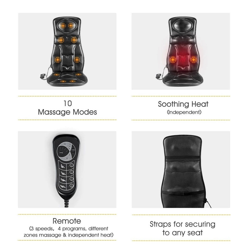 Enjoy the refreshing massaging experience with this massage cushion without spending lots of dollars. Boosting its built-in ten vibrating motors at four massage zones with adjustable massage speed and mode settings, this massage chair ensures you have a relaxing full body massage and even contributes to metabolism. This massage cushion offers great flexibility and portability, making it convenient for you to move from your home couch to your office chair or car seat. Go for your best massage seat cushion to reduce tensions on muscles, pains on upper or lower back and improve blood circulation.