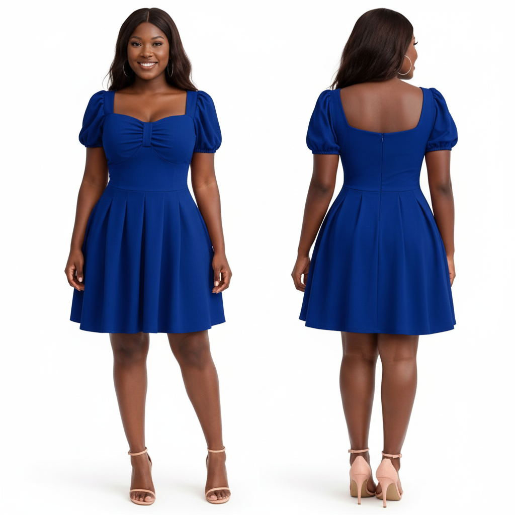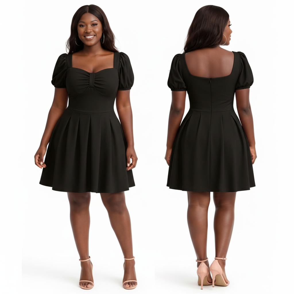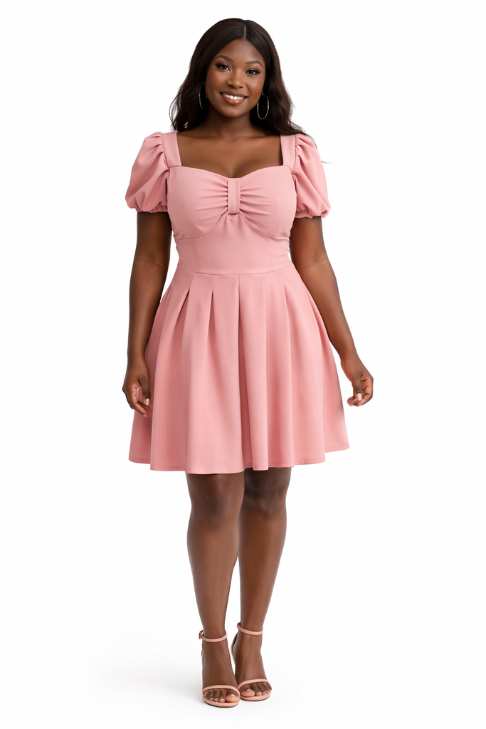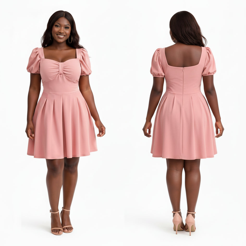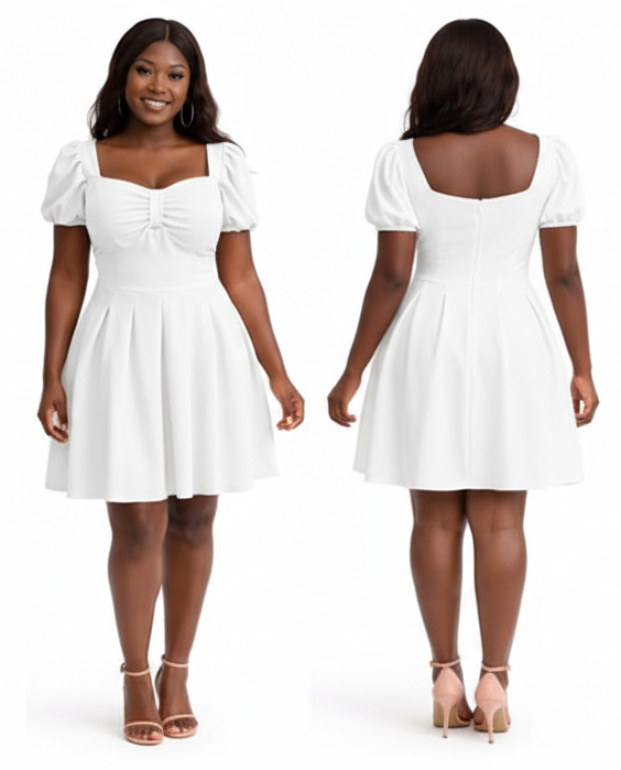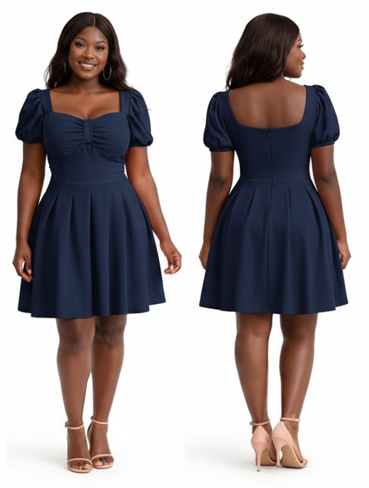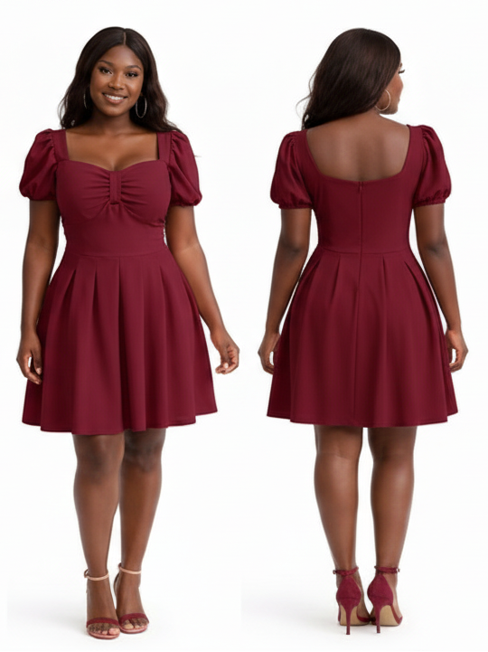 This Sweetheart Neckline Puff Sleeve Skater Dress features a romantic, vintage-inspired silhouette that transitions effortlessly from day to night.
