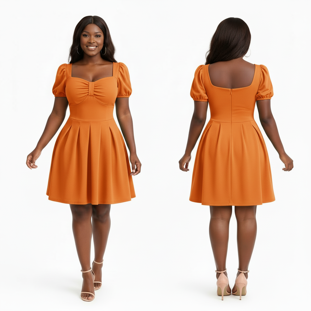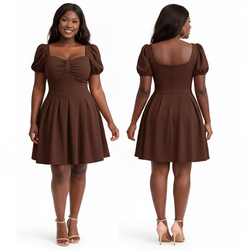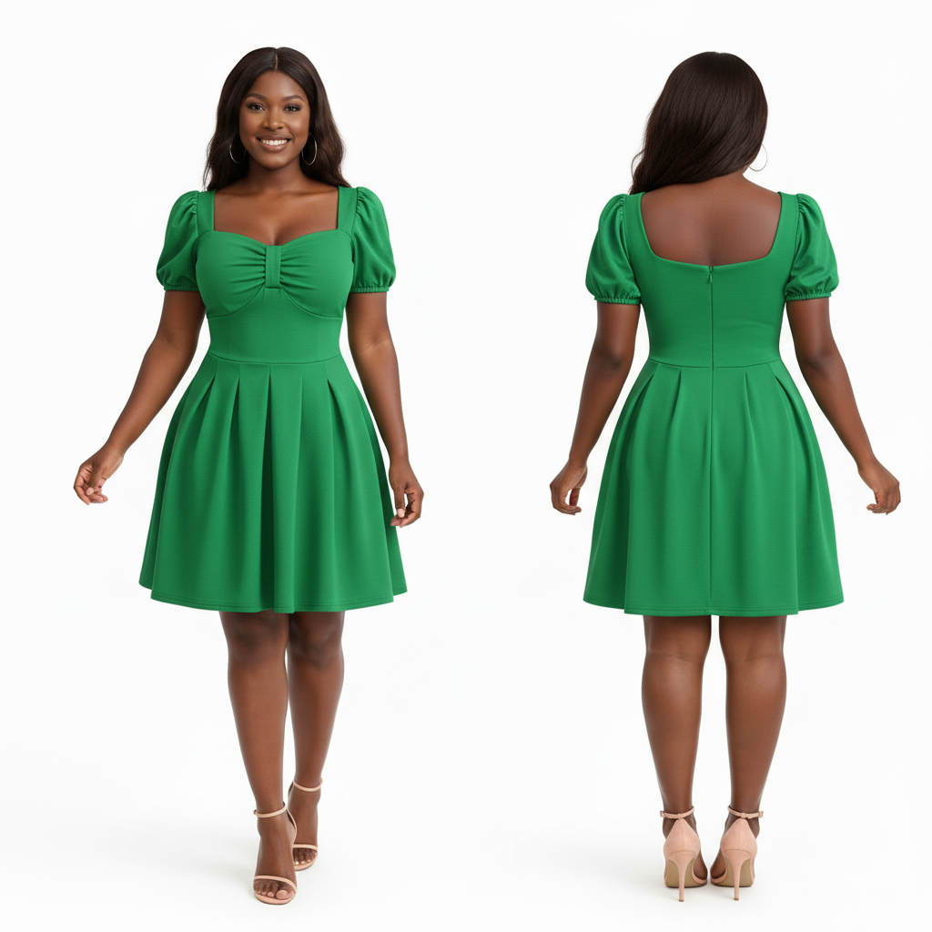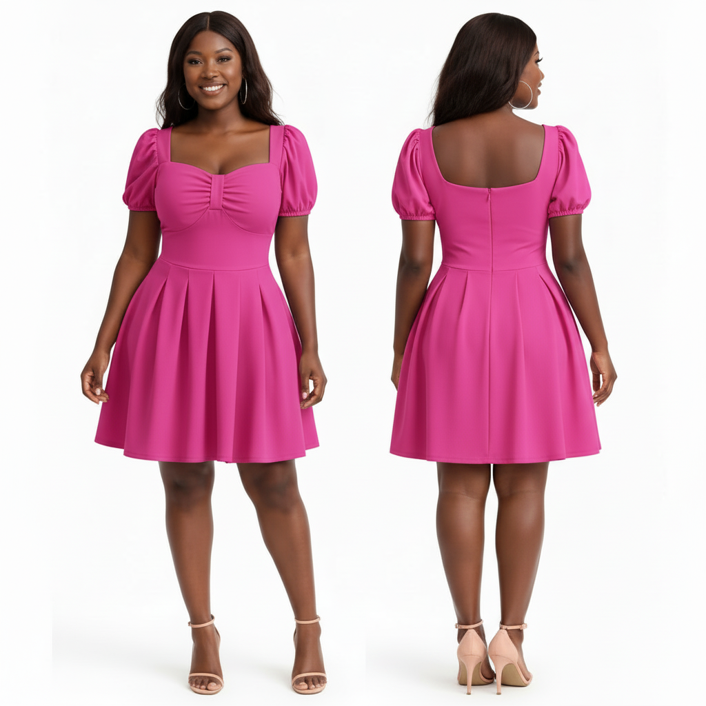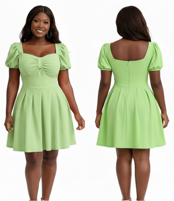 This Sweetheart Neckline Puff Sleeve Skater Dress features a romantic, vintage-inspired silhouette that transitions effortlessly from day to night.